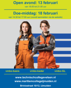 Kom naar onze Open Avond of Doe-Middag en bekijk alle mogelijkheden van onze opleiding! Ontdek alles over varen en schepen. Het is ook mogelijk om bij ons op school te